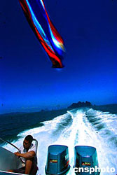 2月中旬的泰國布吉島上風平浪靜,游船劃破海面上賤起長長浪花,使寧靜的大海多了幾分壯觀。海嘯地震過后,到這里旅游的客人日益增多,當地旅游業正在逐步復蘇。作者:宋吉河