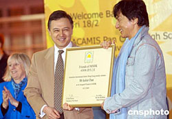 國際影星成龍2月18日在香港出席香港澳洲國際學校慶祝創校十周年活動,成龍獲該校頒發“AISHK教育之星。并與該校高層共同舉行切燒豬儀式。作者:鄧慶樂