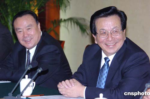 中新社北京三月四日電 中共中央政治局常委吳邦國(guó)、溫家寶、曾慶紅、黃菊、吳官正、李長(zhǎng)春、羅干四日下午分別看望出席全國(guó)政協(xié)十屆三次會(huì)議的委員,并參加了分組討論,與政協(xié)委員共商國(guó)是。