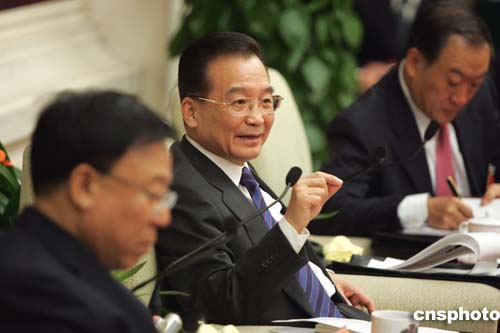 國(guó)務(wù)院總理溫家寶三月五日下午與出席十屆全國(guó)人大三次會(huì)議的甘肅代表一起審議政府工作報(bào)告。作者:毛建軍