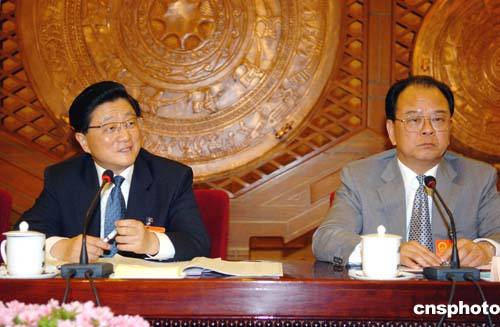 圖:黃菊聽取中國科學院院長路甬祥發言
