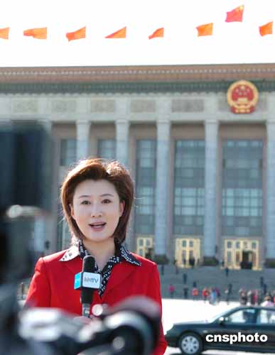 圖:美女主持人報(bào)道全國政協(xié)閉幕大會