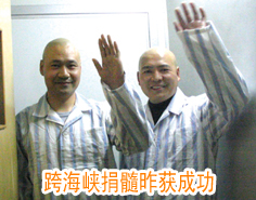 生命的希望從海峽傳來了。二00四年八月,在劉忠祥等志愿者和徐州市相關(guān)部門的努力下,遠在臺灣花蓮市的世界最大的華人骨髓資料庫——臺灣慈濟骨髓干細(xì)胞中心在對骨髓庫進行檢索后找到了與張猛、李懷剛基因相符的配型。經(jīng)過兩岸工作人員最細(xì)致的篩選,兩名年齡分別為二十二歲和三十三歲的臺灣女青年被確定為最終的配對者。張猛和李懷剛的生命重燃希望。