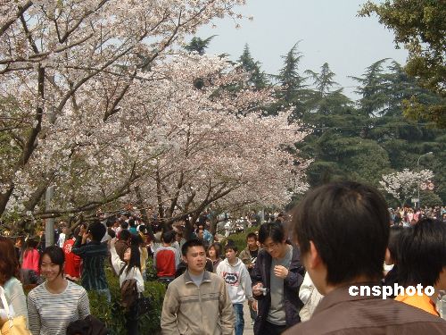 只見武大滿園蒼翠,桃紅櫻白,鳥語花香,游人如梭。游人或走馬觀花,或舉起相機抓拍美景,或散坐草地,自在悠閑。不少市民舉家前往,有的中小學團體出游,更有大量外地游客蜂擁而至,讓導游和學校管理人員都忙得不亦樂乎。