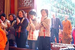 四月八日,幾名游客在少林寺拜佛。河南登封少林景區管理局傳出消息,三月份以來,少林景區接待中外游客逾七萬人次,與去年同期相比增長百分之十六。作者:慎重