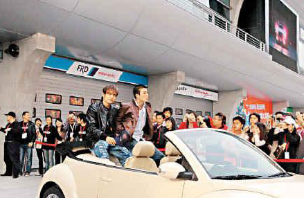 據香港媒體報道,眾演員中午時分抵達上海,首先舉行記者會,之后到上海F1賽車場欣賞賽車及飄移表演,眾演員欣賞過四位國際級賽車飄移高手表演,之后大會安排周杰倫、陳冠希、鈴木杏坐開篷車出場,車迷更加瘋狂,蜂擁上前希望一睹偶像風采,場面熱鬧。