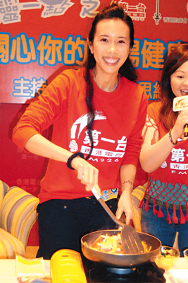 在示范菜式時,Karen說在英國讀書時,為了省錢,經常親自下廚;直至入行后,因要忙著工作,才絕跡廚房,間中只會親手炮制Tiramisu(蛋糕)招呼客人及朋友,人人都贊好味道。有指Karen要做稱職的家庭主婦,便不應絕跡廚房,但她覺得娶老婆不是做工人,千萬不要預她做家庭主婦呢!至于馮德倫可會入廚?Karen相信對方沒有煮食的習慣,因為她身邊的朋友,大多愛出街吃東西。