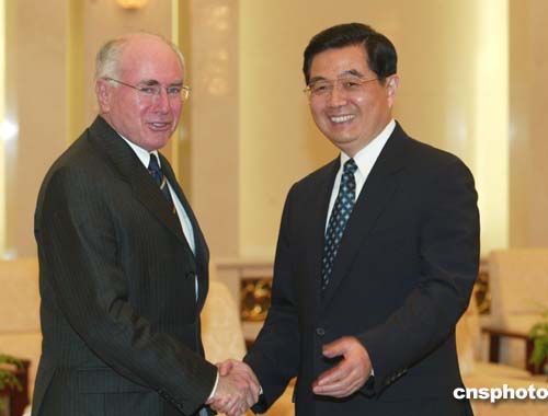 中新社北京四月十八日電(記者齊彬)中國國家主席胡錦濤今天下午在人民大會堂會見了澳大利亞總理霍華德。