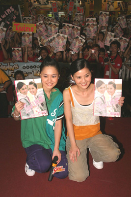 中新網(wǎng)4月19日電 據(jù)香港《大公報(bào)》報(bào)道,Twins繼早前旋風(fēng)式登陸臺(tái)灣及內(nèi)地多個(gè)地方為國(guó)語(yǔ)專輯《見習(xí)愛神》宣傳,昨日起程往馬來(lái)西亞,抵步后即于市中心一所商場(chǎng)舉行簽名會(huì)。當(dāng)?shù)卣{(diào)動(dòng)數(shù)十軍人維持秩序。簽名會(huì)下午四時(shí)開始,但早上七時(shí)已有Fans排隊(duì),到中午時(shí)份已有數(shù)千人到場(chǎng)拿簽名籌,瞬間三千個(gè)籌已派光;監(jiān)于人實(shí)在太多,龍尾更排至商場(chǎng)外,場(chǎng)內(nèi)圍觀人數(shù)達(dá)過(guò)萬(wàn)人,有關(guān)當(dāng)局更調(diào)動(dòng)數(shù)十位軍人幫忙維持秩序,直至差不多開始簽名會(huì)時(shí),場(chǎng)內(nèi)足足達(dá)萬(wàn)人圍觀。為滿足一些fans來(lái)自星馬及臺(tái)灣等地,逐一為沒(méi)有拿到籌的fans簽名,足足簽了七千人之多。