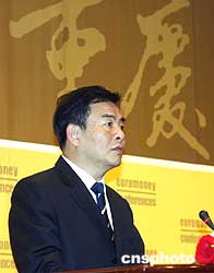 四月二十五日,由歐洲貨幣機構投資和重慶市人民政府共同舉辦的“重慶:西部大開發引入新機遇論壇”在重慶開幕。圖為重慶市長王鴻舉在論壇上致辭。作者:郭晉嘉