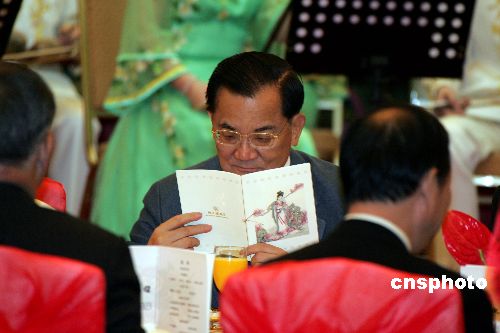 以中國國民黨主席連戰為首的中國國民黨大陸訪問團四月二十七日晚在南京夫子廟狀元酒樓酒店品嘗秦淮風味小吃,觀賞民族音樂表演。作者:毛建軍