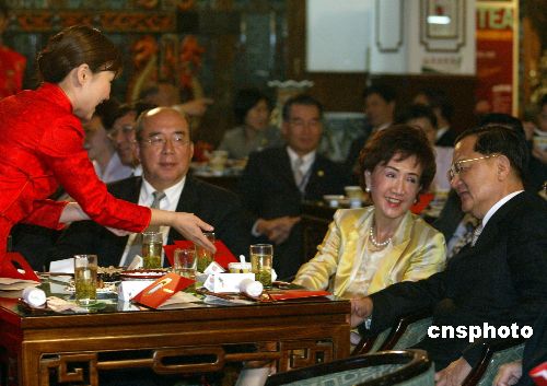 四月二十八日晚,中國國民黨主席連戰(zhàn)到北京老舍茶館喝茶看戲,體味地道的老北京風(fēng)情。作者:廖文靜