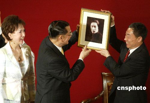 四月二十九日,中國國民黨主席連戰在北京大學發表演講,并獲贈具有特殊意義的北京大學紀念品。作者:廖文靜