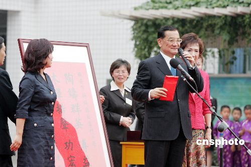中新網4月30日電 中國國民黨主席連戰今日(30日)下午回到母校——后宰門小學,并向該校捐贈包括《臺灣通史》等三份禮物及10萬元捐款。