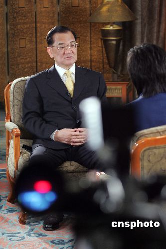五月三日,中國國民黨主席連戰就此次大陸訪問活動接受大陸媒體記者的訪問。作者:毛建軍