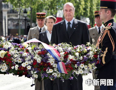 中新網5月8日電 據國際在線報道,法國8日在首都巴黎的凱旋門舉行儀式,紀念第二次世界大戰歐洲戰場勝利60周年。