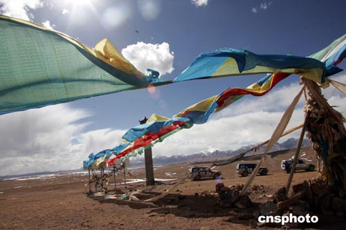 雙湖路上晴空萬里 車隊穿梭于色彩之中(圖)