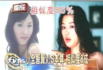 光打扮還不夠,連動作都得一模一樣,您看看這個廣告里,全智賢這個翹二郎腿的動作,小全智賢模仿的像不像,說真的,不論是輪廓,會放電的大眼睛,一頭長發,相似度8成!