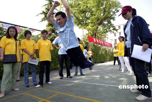 五月二十日,北京華文學院在北京舉行運動會,來自十七個國家的二百多名學生以及全體教職工參加了趣味橫生的運動會。圖為學生們在八十米折返跑的比賽中。作者:盛佳鵬