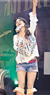 中新網5月23日電 據香港媒體報道,容祖兒和張信哲前晚在會展合作舉行《新城容我信愛一唱傾情音樂會》,祖兒身穿熱褲透視衫露黑bra大秀性感。開場時兩人合唱多首歌曲,令觀眾拍爛手掌,祖兒一時忘形說:“多謝張信哲給我的音樂會做特別嘉賓,我好少同帥哥合作。”事后祖兒坦言因太緊張才說錯,她說:“其實我是想講拍檔。”而阿哲大方說:“無所謂,很久沒跟美女合作了。”