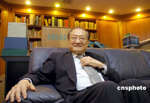 香港著名作家查良鏞在其創作武俠小說五十周年之際,接受中新社記者專訪,金庸說“書”論“劍”談笑風生。作者:洪少葵