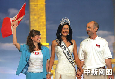 5月31日,環(huán)球小姐總決賽在曼谷舉行。加拿大小姐Natalie Glebova獲得冠軍。圖為加拿大小姐與家人分享快樂(lè)。