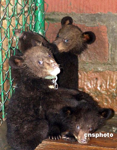5月30日,重慶野生動物世界工作人員把2004年9月出生的3只小白虎和2005年元月出生的7只小熊獨自關在各自的小屋里,馴化它們的表演能力,以期達到在各種環境下一招制勝的本領。作者:陳仕川