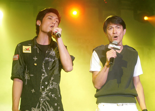 話說當(dāng)所有嘉賓相繼出場后,現(xiàn)場奏起《無間道》主題曲,“樂仔”一心準(zhǔn)備獨(dú)唱,怎料發(fā)覺臺(tái)下觀眾嘩聲四起、尖叫聲不絕于耳,回頭一望,才驚覺“華仔”在一角突然現(xiàn)身。“樂仔”既愕然又驚喜,一副無法置信表情,甚至連說話也不會(huì)講,即時(shí)雙腳跪地;“華仔”見狀也上前跪下扶起“樂仔”。一曲既終,“樂仔”再度向“華仔”作九十度鞠躬致謝,“華仔”則鼓勵(lì)他道:“這里只是你的開始,下次紅館見。”