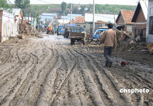 六月十日,黑龍江省寧安市沙蘭鎮遭遇二百年一遇洪災,截至六月十三日中午,已知有九十二人遇難,其中包括八十八名小學生。圖為洪水襲擊后的沙蘭鎮街道。作者:吳兆飛