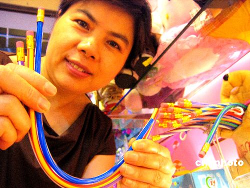 6月19日,在南京一家時尚用品商店里,一款名為“百變不斷”的新型鉛筆十分引人注目。據介紹,這種新型鉛筆采用國外最新工藝制作,筆長約40厘米,筆芯使用效果相當于2B的普通鉛筆。該鉛筆即可實用,也可作為裝飾,柔度很高,可以隨意彎曲打結,還可扎在女孩的辮子上。作者:孫忠南