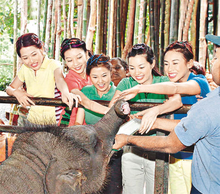 中新網6月21日電 據星島日報報道,20位準港姐昨日繼續在斯里蘭卡進行拍攝,佳麗們被安排往“大象孤兒院”探訪,其間鄧上文與大象合照時,竟被大象撩腳,嚇得她馬上彈開﹔至于葉翠翠則盡顯愛心,除了向大象喂奶外,見到現場的野狗時亦流露憐憫之色。