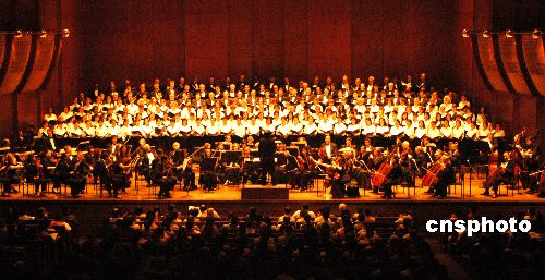 中美藝術家于當地時間六月十九日在美國紐約林肯中心共同舉辦交響音樂會,紀念中國人民抗日戰爭暨世界反法西斯戰爭勝利六十周年。作者:龔文謨