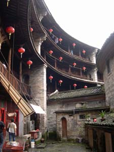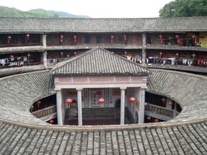永定縣境內的大型方型、圓型土樓有8000余座,最壯麗堂皇的、最有代表性的是洪坑村振成樓。這一“土樓王子”按八卦觀念結構建造,卦與卦之間設防火墻,坐北朝南,調節陰陽。每卦與內層一樓采用北方四合院格式。全樓的設施布局既有蘇州園林的印跡,也有古希臘建筑的特點。堪稱中西合璧的建筑奇葩。1995年它的建筑模型與北京天壇作為中國南北圓形建筑代表參加了美國落杉磯世界建筑展覽會,引起了轟動,一直被稱為“世界上獨一無二的神話般的山區土樓建筑”。