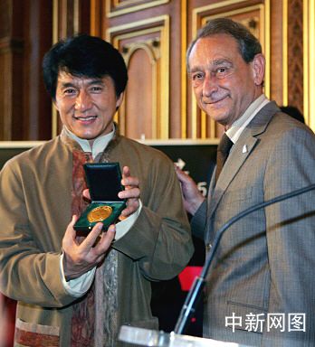 中新網6月29日電 據光華日報報道,法國巴黎市長德拉諾今天在市政廳頒與成龍巴黎市榮譽勛章,表彰這位香港動作巨星的演藝成就及他的笑容。