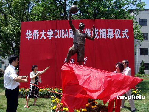 七月二日上午,由華僑大學香港校友會捐贈給母校的CUBA標志性雕塑揭幕儀式在該校的春華園內舉行。據雕塑的設計者——華僑大學藝術系孫德明老師介紹,該雕塑由華僑大學香港校友會捐資十三點五萬元,歷時一個多月建造的。雕塑高三點四米,以華大學生為原型,設計成具像、動態的單手投籃的動作,體現了當代大學生積極向上、拼搏的精神風貌。作者:石勇