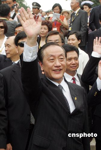 新黨主席郁慕明率領(lǐng)的新黨“民族之旅”訪問團七月七日拜謁廣州黃花崗七十二烈士陵園。郁慕明向在路旁歡迎的廣州市民揮手致意。作者:毛建軍