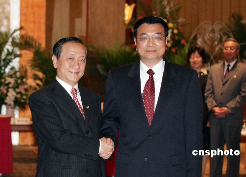 中共遼寧省委書記李克強七月八日在大連會見并宴請新黨主席郁慕明率領的臺灣新黨“民族之旅”訪問團。作者:毛建軍