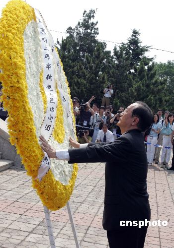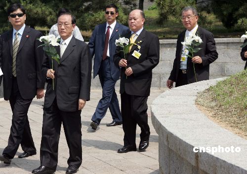新黨主席郁慕明率領的臺灣新黨“民族之旅”訪問團七月九日在大連向旅順萬忠墓敬獻花圈。萬忠墓是中日甲午戰爭旅順殉難同胞的墓地。一八九四年十一月二十一日,日軍侵入旅順市區,滅絕人性地進行了四天三夜大屠殺,我近兩萬同胞慘遭殺害,遇難者尸體被集體焚燒后叢葬于此。作者:毛建軍