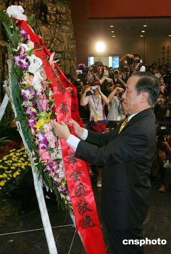 郁慕明參觀抗戰紀念館敬獻花圈