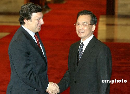中新網7月14日電(記者李靜)中國總理溫家寶今天在北京人民大會堂與歐盟委員會主席巴羅佐舉行了會談。