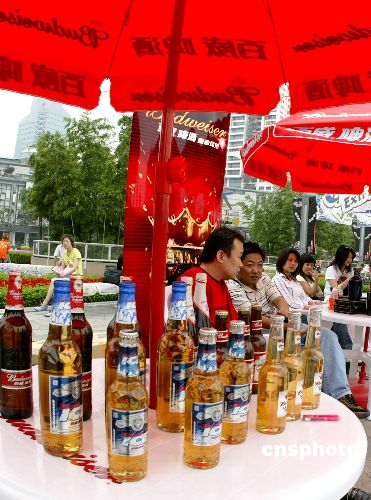 | 2005年7月15日,國(guó)家質(zhì)檢總局召開新聞發(fā)布會(huì),公布對(duì)國(guó)產(chǎn)以及部分國(guó)外品牌啤酒的抽查檢測(cè)結(jié)果,這次啤酒國(guó)家監(jiān)督抽查,共抽查了221種啤酒產(chǎn)品。檢驗(yàn)的科學(xué)數(shù)據(jù)標(biāo)明,國(guó)內(nèi)生產(chǎn)的啤酒甲醛含量是符合國(guó)家強(qiáng)制性標(biāo)準(zhǔn)和世界衛(wèi)生組織有關(guān)規(guī)定的,是安全的,廣大消費(fèi)者可以放心飲用。同時(shí),也表明國(guó)產(chǎn)名牌啤酒完全可以與純進(jìn)口啤酒相媲美。圖為啤酒街頭促銷。作者:張和平