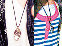讀者昨爆料,直指“仔仔和大S戴同款情侶項鏈”,記者查證結果,上周五大S在機場準備赴上海時,以及前天她陪妹妹徐熙娣(小S)試婚紗,所戴的一條黑色皮質的鏈帶、半透明狀的橢圓形墜子,可能是水晶或瑪瑙之類材質的項鏈,和仔仔的宣傳照,戴的是同款項鏈,仔仔的發型和上周五亮相時一樣,應是近期拍的。