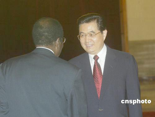 七月二十六日,中國(guó)國(guó)家主席胡錦濤在北京人民大會(huì)堂主持儀式,歡迎津巴布韋總統(tǒng)穆加貝訪華。作者:史利