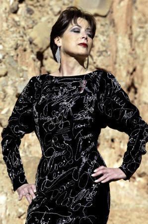 | 玻利維亞服裝設(shè)計師帕提諾(Beatriz Canedo Patino)7月26日在拉巴斯親自穿著作品“好萊塢涂鴉裝”展示,衣服上有她與全球近400位名女人的簽名。這件禮服在24年前制作,用來呼吁各國女性團結(jié)對抗愛滋病。衣服上用白金與水晶珠煉繡著穿過這件衣服的女士姓名,包括德蕾莎修女、小野洋子與凱薩琳赫本(Katharine Hepburn)等。帕提諾是最后一個在這件衣服上加上簽名的人。她因為愛用Alpaca羊毛,自稱Alpaca皇后。這件衣服將在最后一次全球巡回展后拍賣,以對愛滋病防治做出最后的貢獻。(來源:路透/David Mercado)