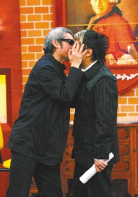 中新網(wǎng)7月28日電 據(jù)臺灣媒體報道,大導(dǎo)演徐克竟跟蔡康永棚內(nèi)玩親親?原來是導(dǎo)演被要求示范教戲,完全是借位,沒碰到!