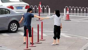 王菲扎著馬尾,穿一件黑色T恤和一條時(shí)尚的乞丐牛仔褲,戴一副超大號的黑色墨鏡,李亞鵬穿米黃色短袖襯衣、休閑褲。從兩人下車一直到在結(jié)婚登記處辦完手續(xù),李亞偉不離左右,而穿淺藍(lán)色T恤的男士則用DV機(jī)進(jìn)行跟拍。