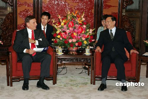 中國國務(wù)委員唐家璇八月二日在北京中南海會見代理團長約翰·米加等美國國會眾議院美中議會交流小組代表團成員。作者:毛建軍