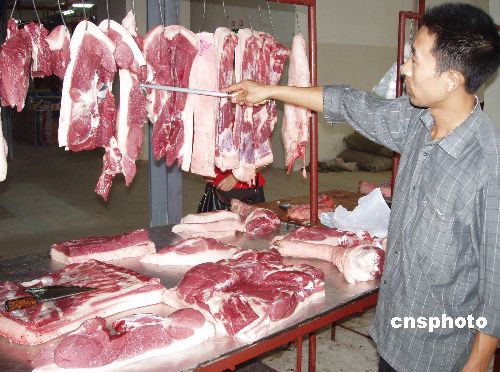 8月4日,重慶奉節檢疫人員緊急檢查豬肉質量。據悉,重慶市長8月3日組織召開緊急會議,部署豬鏈球菌病防控措施,要求提高包括豬鏈球菌病在內的人畜共患疫病的防控意識,全市從當日起全面普查生豬疫情;市工商局警告銷售“白板肉”“單章肉”,屠宰、收購、運輸、儲藏病死豬或病死豬肉,將依照相關法律最高可判無期徒刑。作者:周會