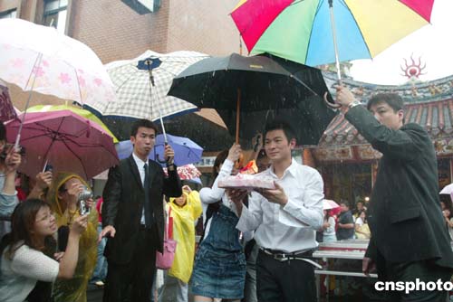 原來(lái)每次華仔到臺(tái)灣宣傳唱片時(shí),都會(huì)遇上大風(fēng)雨,華仔說(shuō):“水為財(cái)嘛,每次我宣傳下雨,唱片都會(huì)賣(mài)得好好,這次都希望過(guò)百萬(wàn)啦。只有三年前我打官司不能出唱片時(shí),那次就是唯一一次沒(méi)下雨!