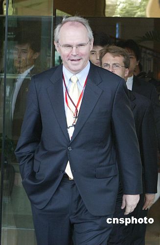 圖:希爾微笑面對第四輪六方會談進入尾聲